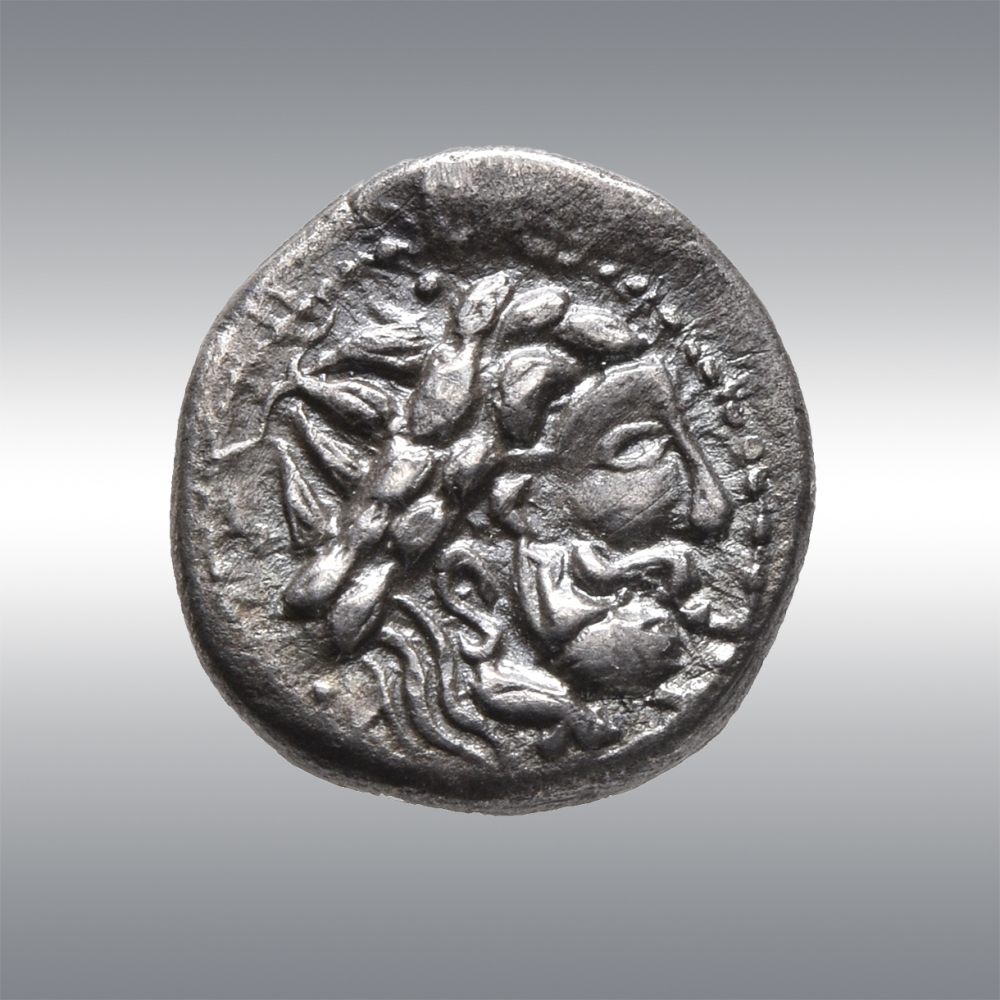 | Description | Laureate head of Zeus right / Helmeted horseman galloping right. Above, an inverted A and a floral ornament; (the remaining Y of PHILIPPOY). |