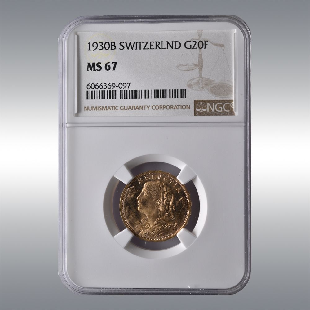 20 Francs Vreneli 1930B @ NGC MS67