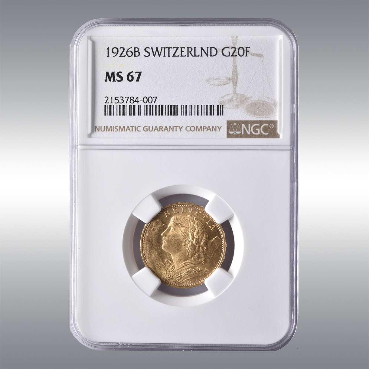 20 Francs Vreneli 1926B @ NGC MS67