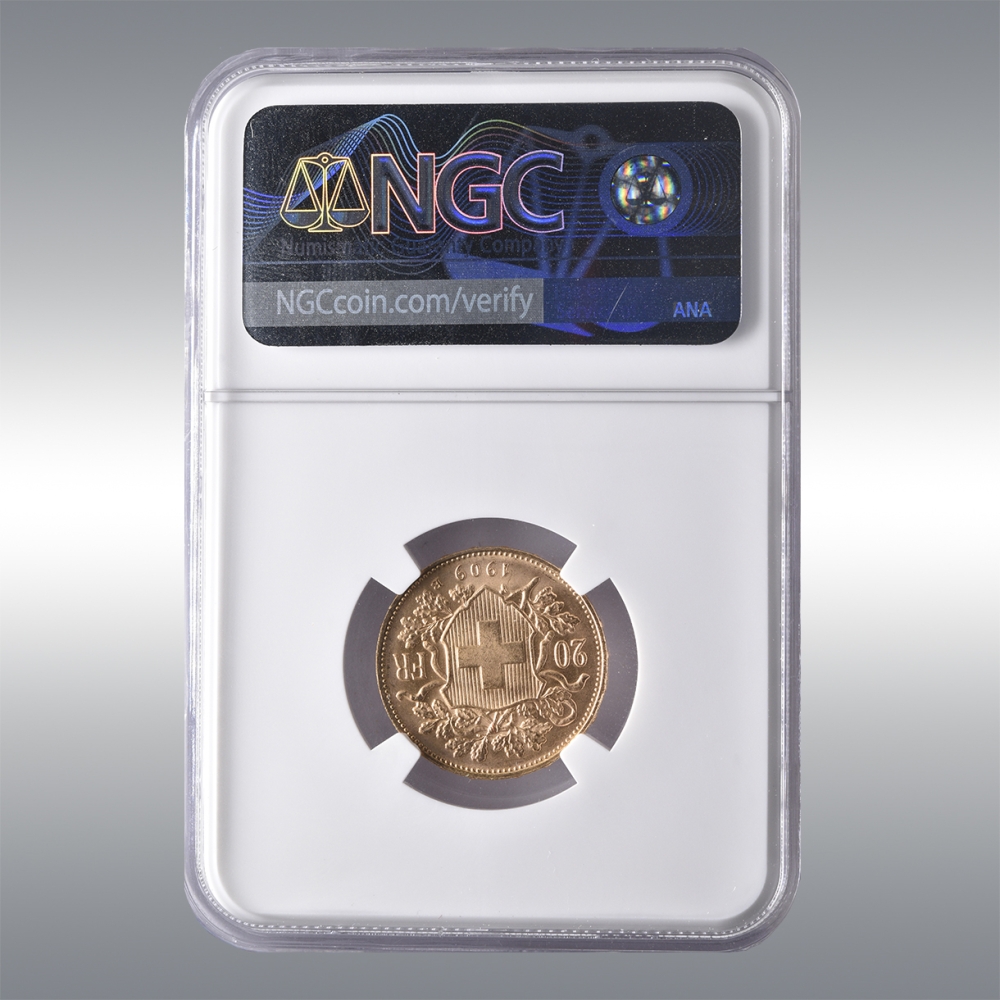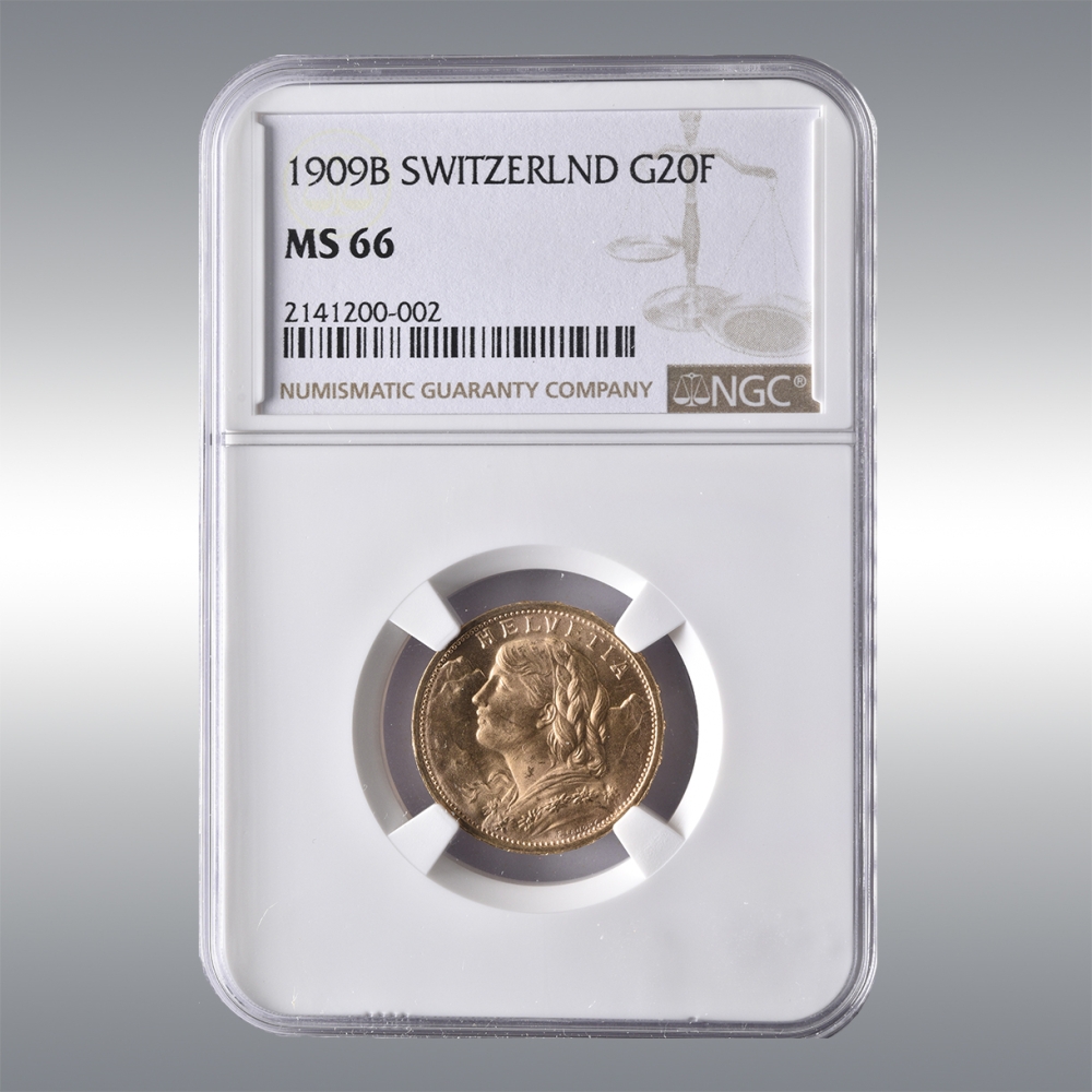 20 Francs Vreneli 1909B @ NGC MS66
