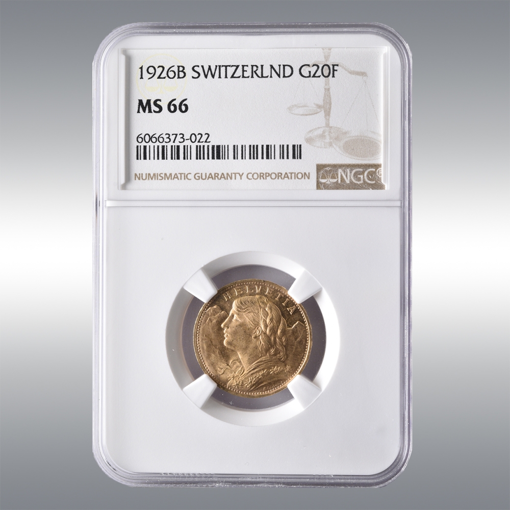20 Francs Vreneli 1926B @ NGC MS66