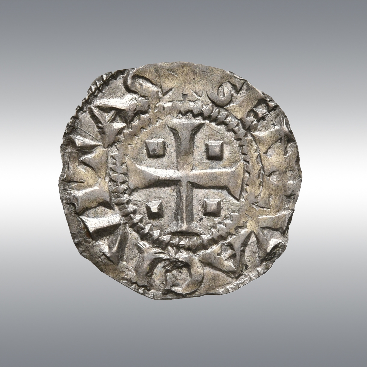 | Description | Head of Saint Peter left / Cross cantoned with bezants in angles. |
