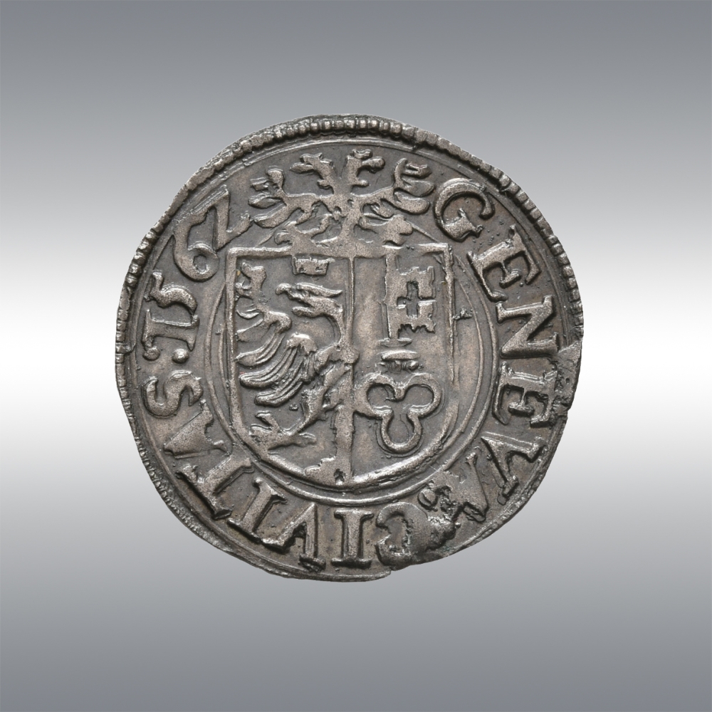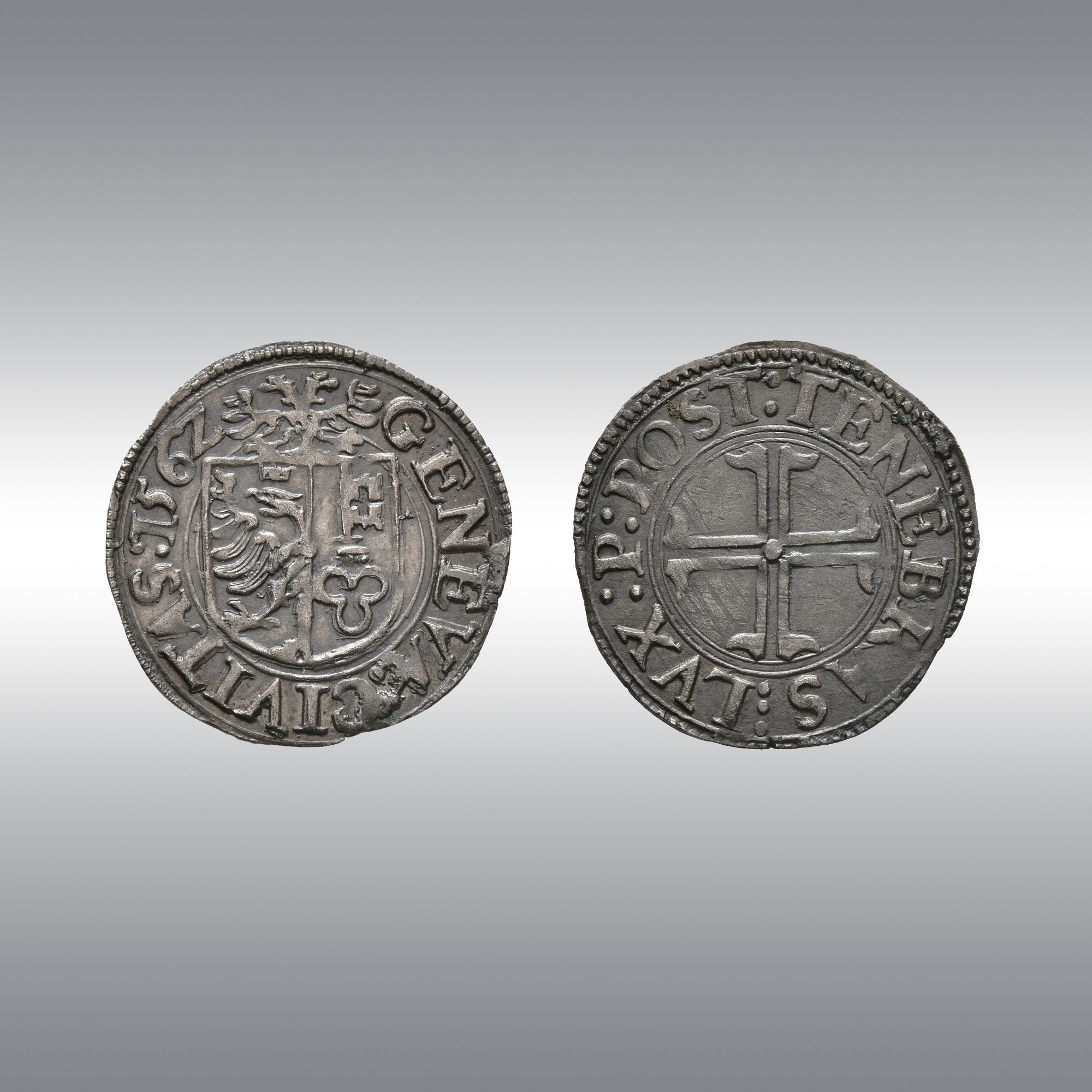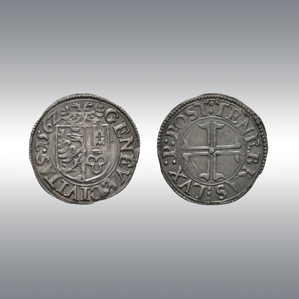 | Description | Shield of Geneva surmounted by the imperial eagle / Voided cross with fleurated ends. |