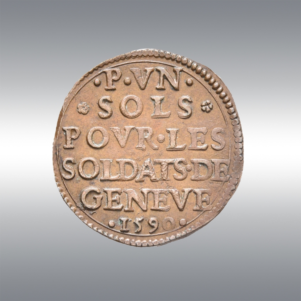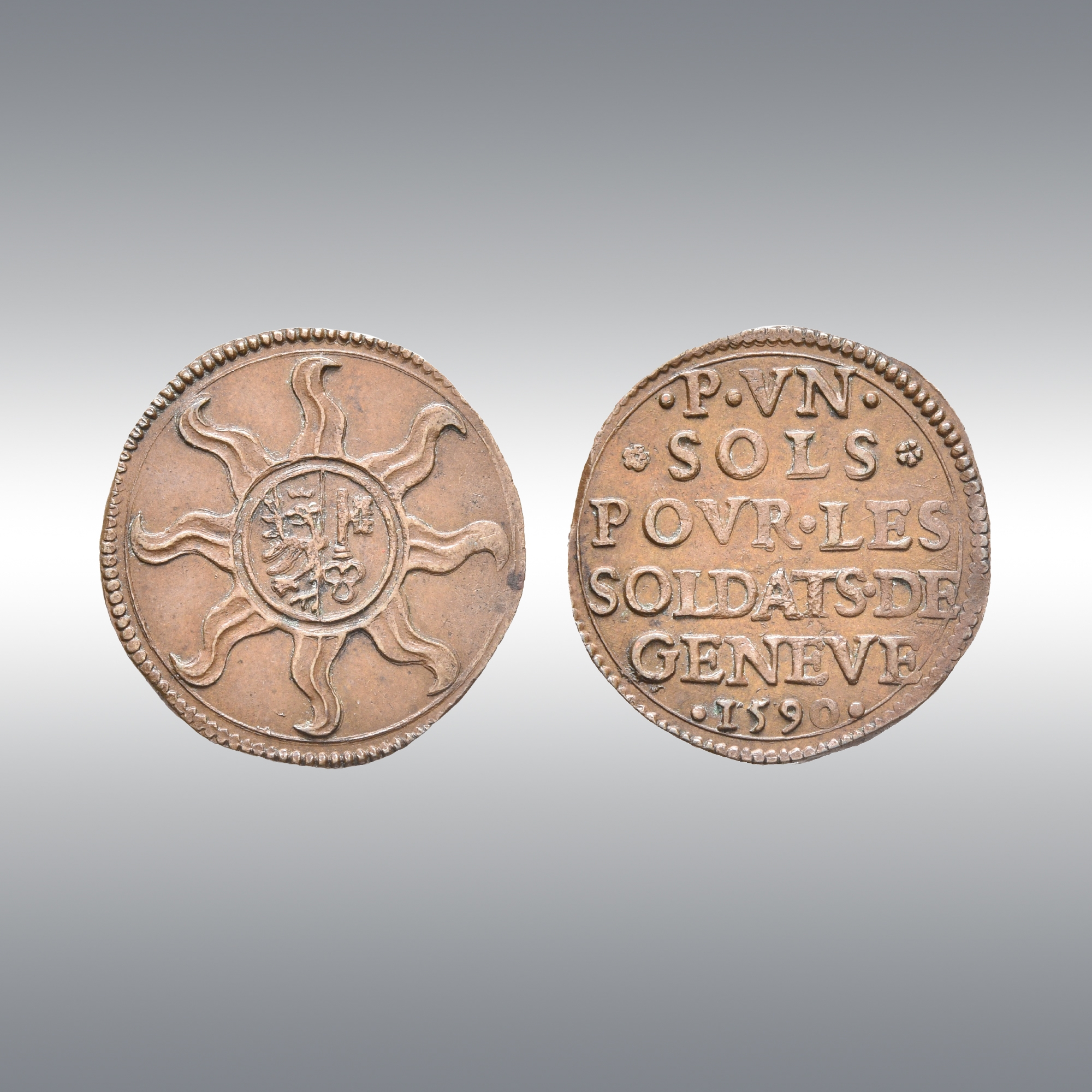 | Description | Arms of Geneva within a sun composed of eight wavy rays / Value on five lines and date. |