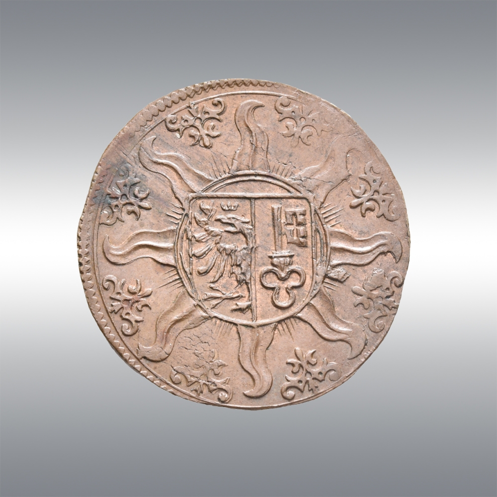 | Description | Arms of Geneva within a sun composed of eight wavy rays. Ornaments between rays. / Value on five lines and date. |