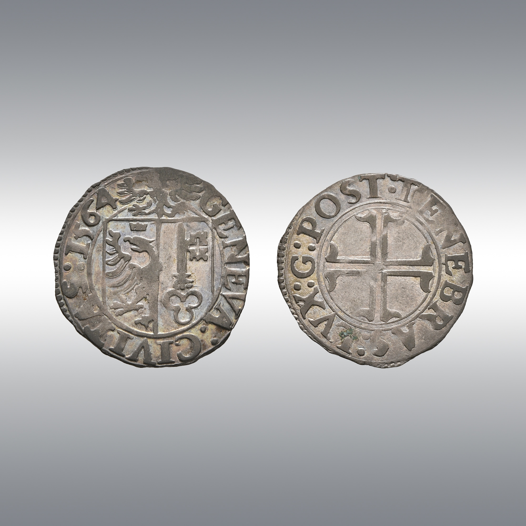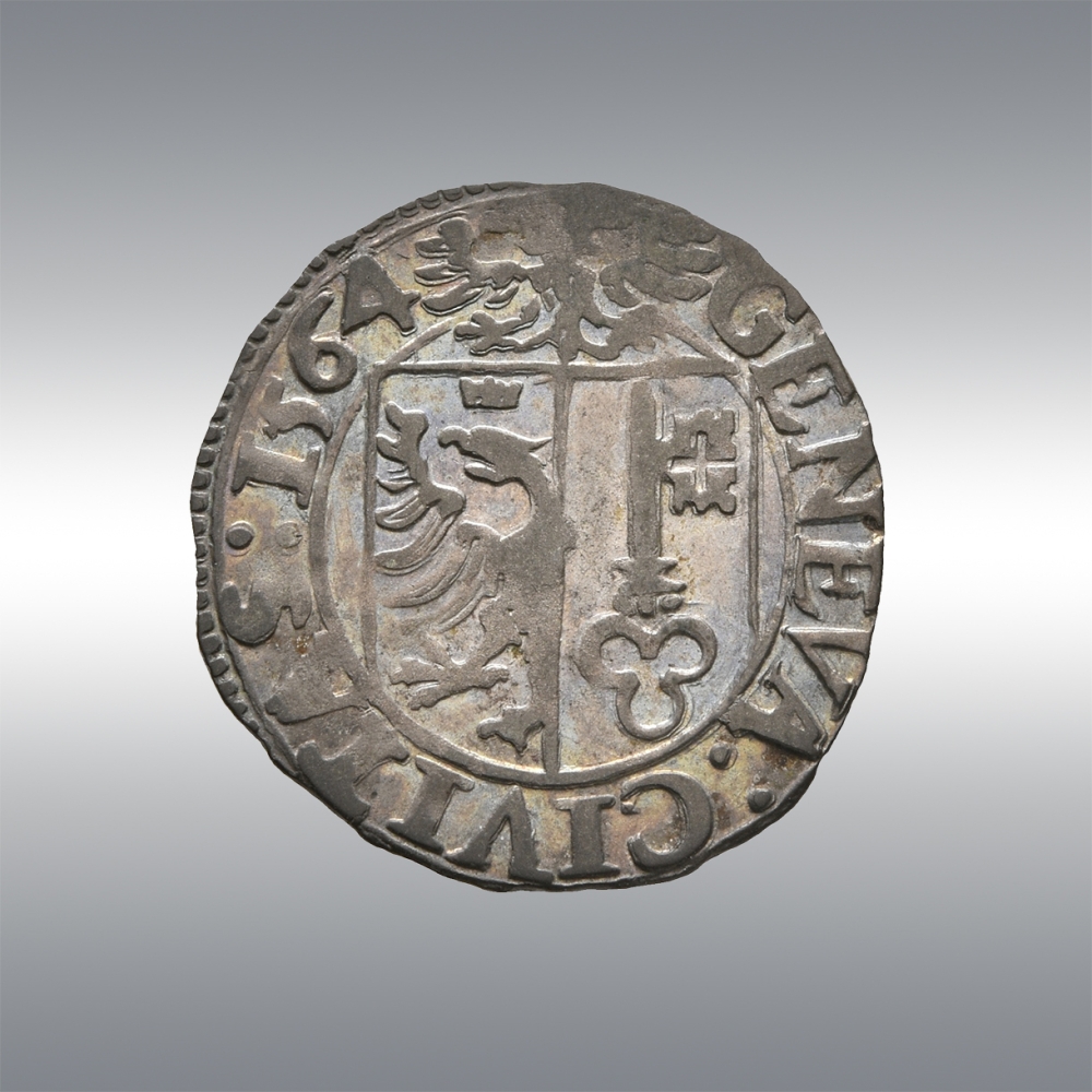 | Description | Shield of Geneva surmounted by the imperial eagle / Voided cross with fleurated ends. |