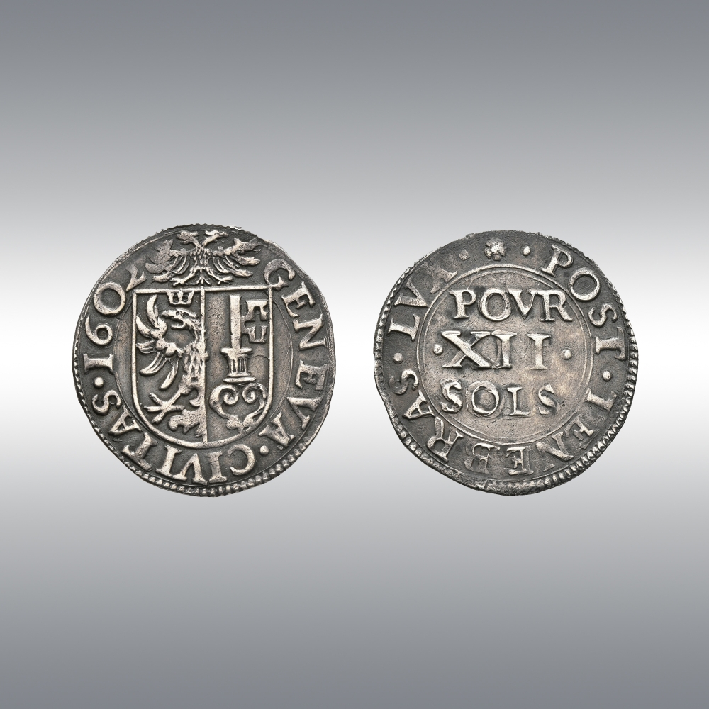 | Description | Shield of Geneva surmounted by the imperial eagle / Value on three lines. |
