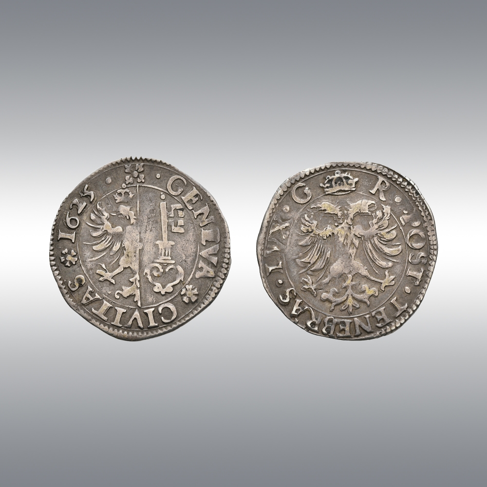 | Description | Arms of Geneva within a circle / Imperial eagle crowned. |